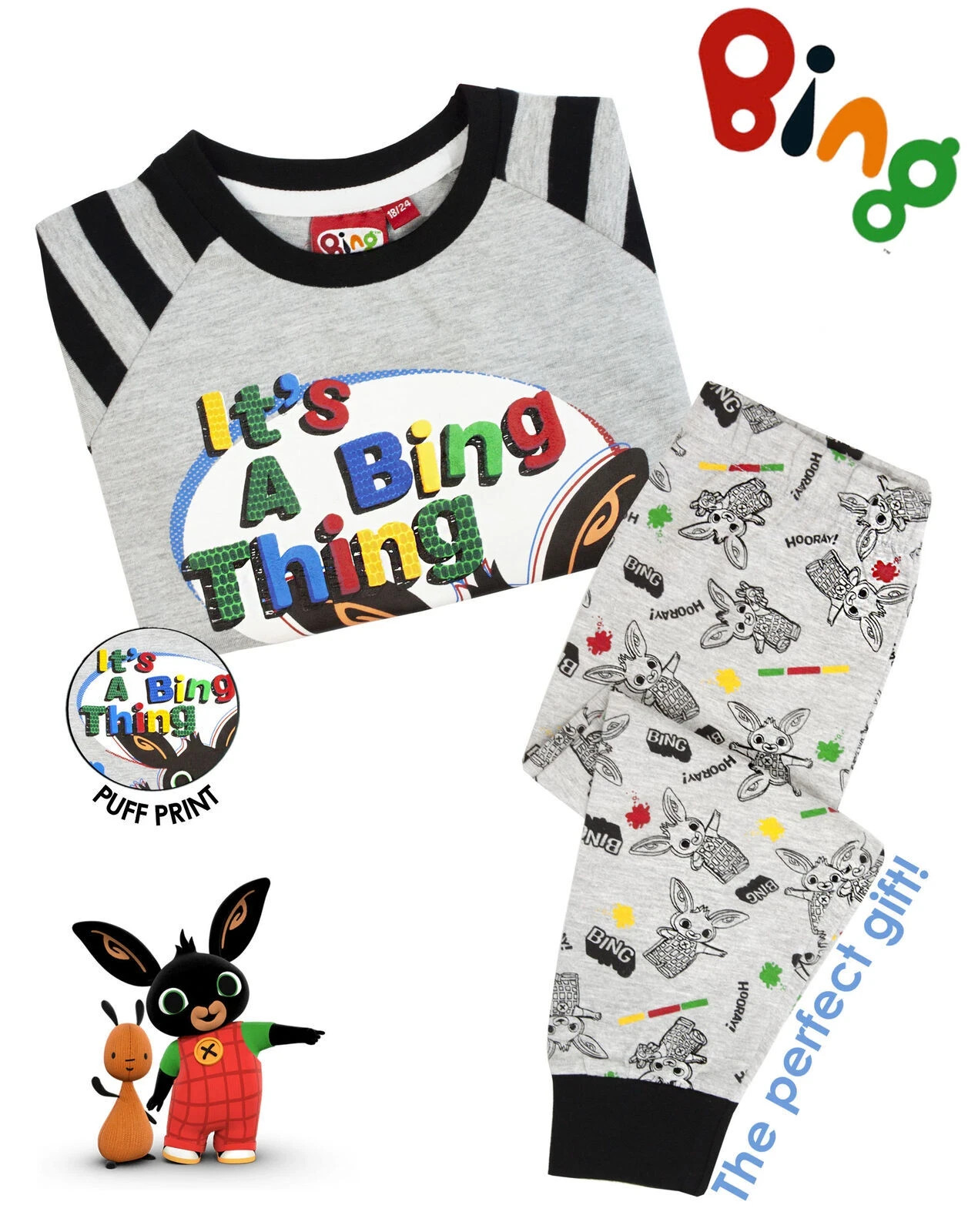 (18-24 Months, Grey/Black) Bing Bunny Boys Its A Bing Thing Short Pyjama Set