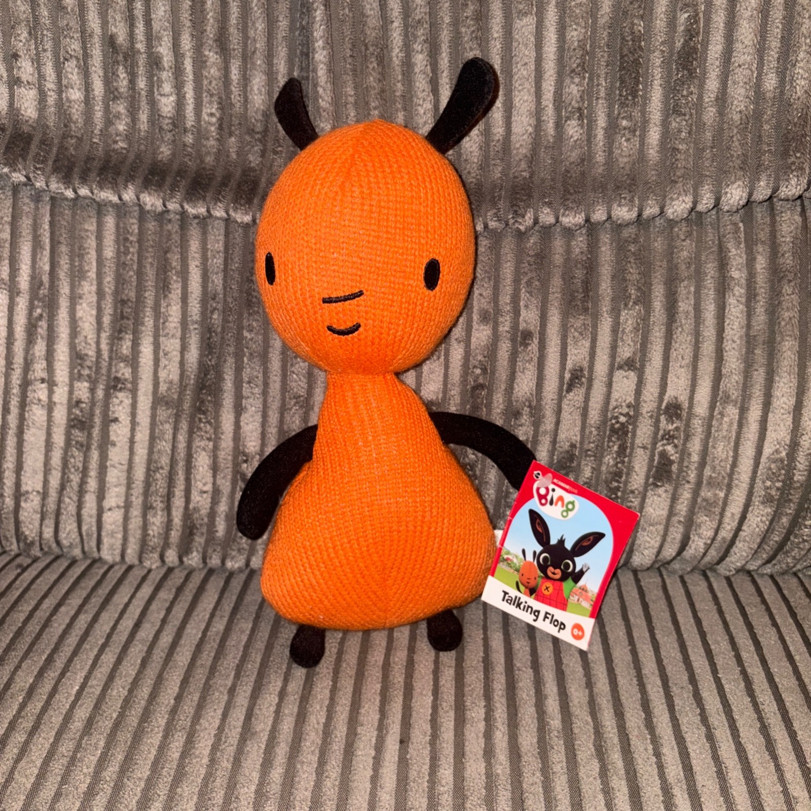 Bing toys, talking Flop teddy bear. Flop makes sounds like he does in the Bing CBeebies TV Show. Perfect toddler toys, Orange