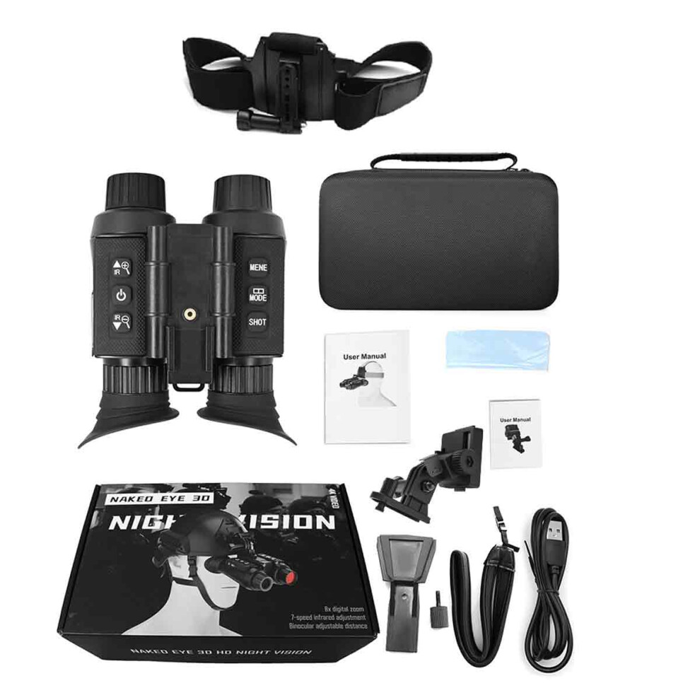 NV8000 Naked-eye 3D high-definition Digital Helmet Night Vision Device Binocular Infrared head-mounted night Vision Device (32GB memory card)