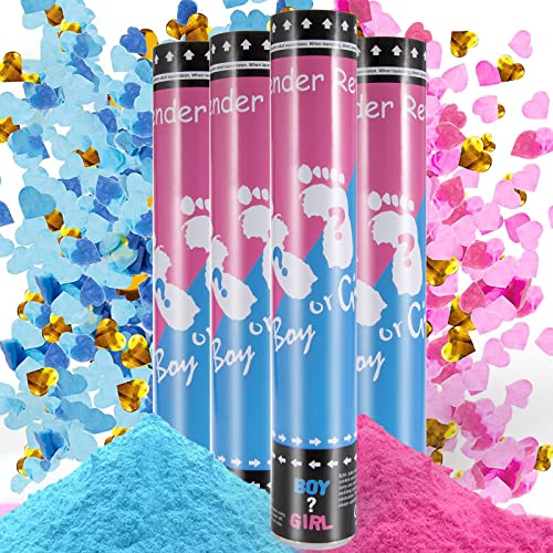 Partyjoker Gender Reveal Cannon Confetti - 2 Pink & 2 Blue - Biodegradable FSC® Confetti - Simple & Safe to Use for Gender Reveal Parties