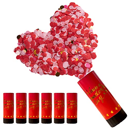 DEARLIVES 6 Pcs Red Confetti Cannons, Biodegradable Confetti Wedding Party Poppers 11cm with Twisting Black Turntable to Left for Graduation Bridal Anniversary New Year Celebration Supplies