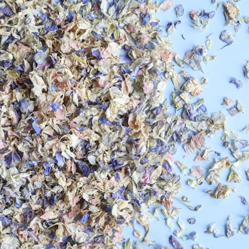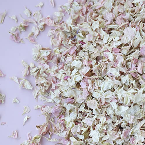 Natural Biodegradable Flower Confetti for Wedding Celebrations | Cheap British Eco-friendly Real Dried Delphinium Petals (Vintage Pink & Ivory, 1 Litre)