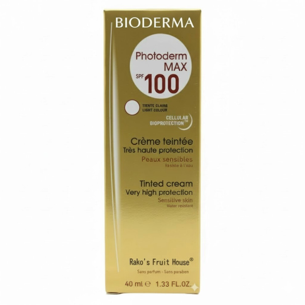 Bioderma Photoderm MAX SPF 100 Tinted Cream - Very High Protection for Sensitive Skin, Water Resistant, Light Colour, 40ml