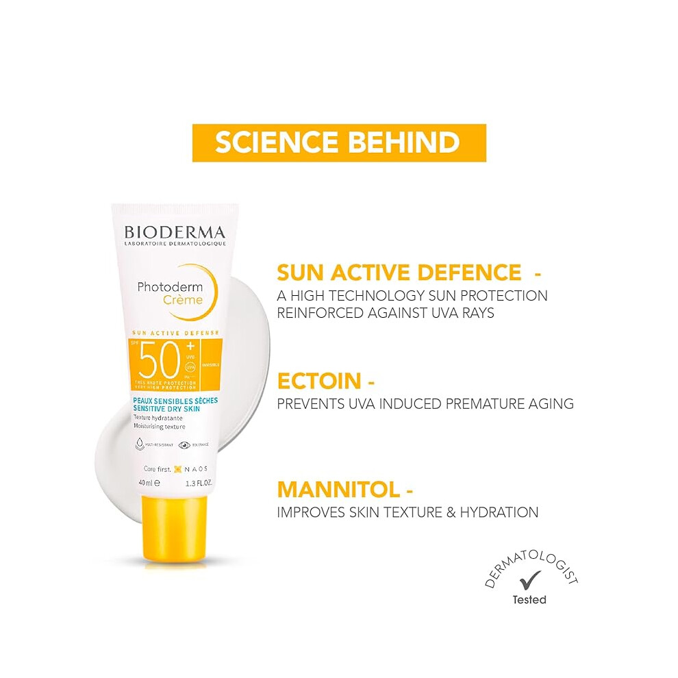 Bioderma Photoderm Cream Sun Active Defense SPF 50+ UVB UVA Peaux Sensible Sensitive Dry Skin 40ml