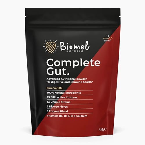 Biomel Complete Gut - Pure Vanilla - Advanced Gut Health - 450g/30 Servings - Vegan Friendly - Gluten Free - Delicious & Effective