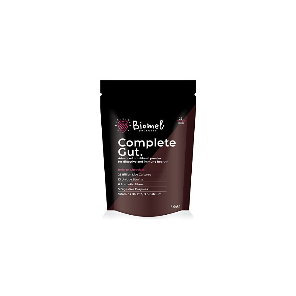 Biomel Complete Gut - Belgian Chocolate - Advanced Gut Health - 450g/30 Servings - Vegan Friendly - Gluten Free - Delicious & Effective