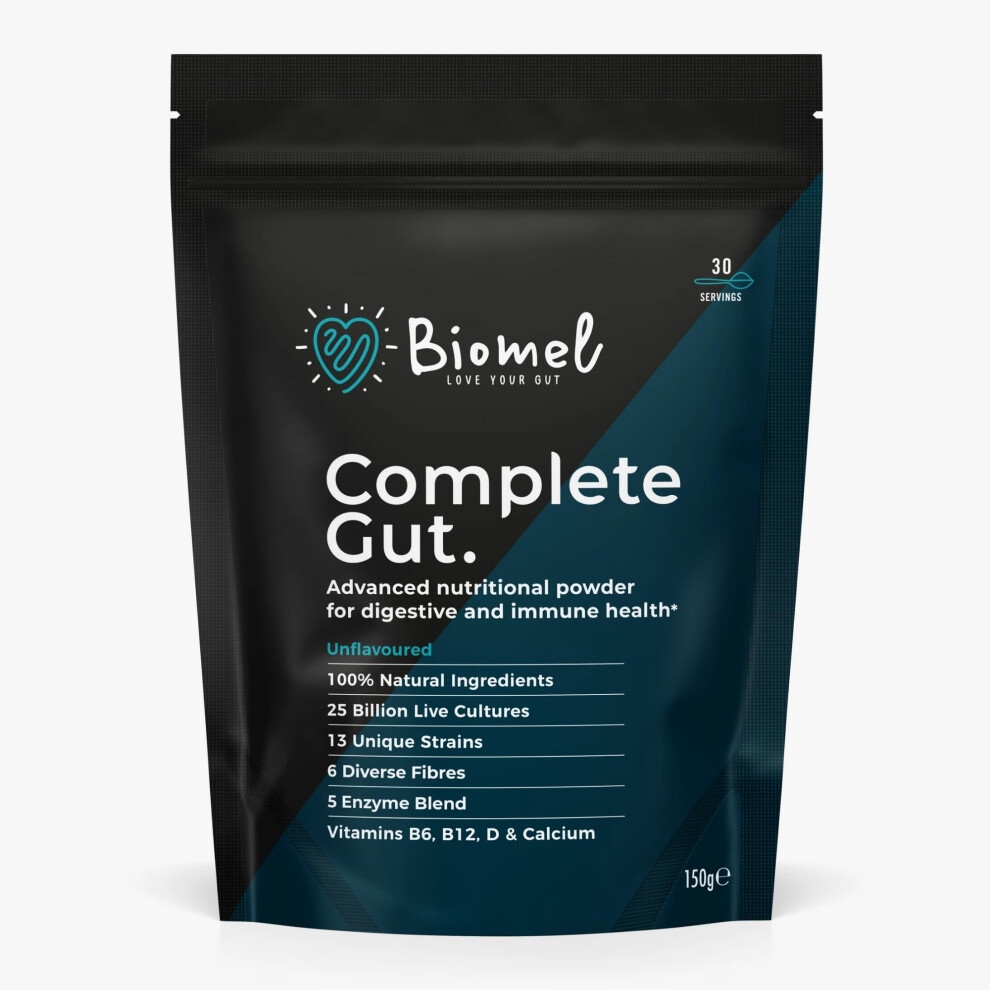 Biomel Complete Gut - Unflavoured - Advanced Gut Health - 150g/30 Servings - Vegan Friendly - Gluten Free - Delicious & Effective