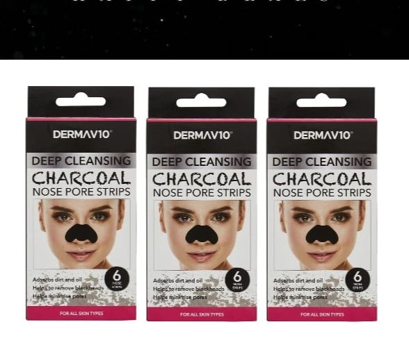 2x Derma V10 Charcoal Nose Pore Strips , Deep cleansing , Blackheads - 6strips