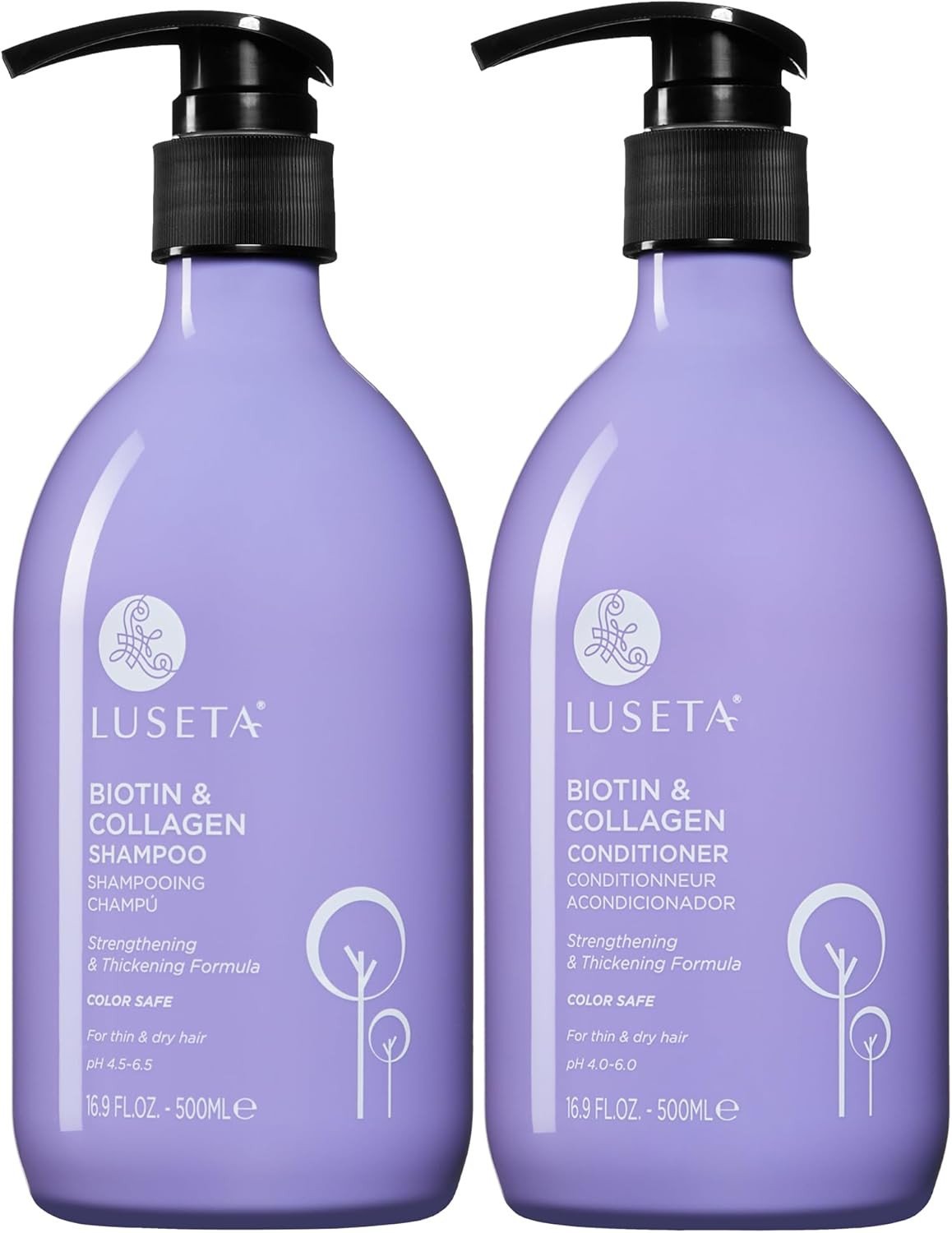 Luseta Biotin Shampoo and Conditioner Set for Hair Growth, Anti-Hair Loss shampoo volume Thickening with Collagen, Sulfate and Paraben free, Argan Oil to Repair Split Dry Hair Salon Quality- 2x500ml