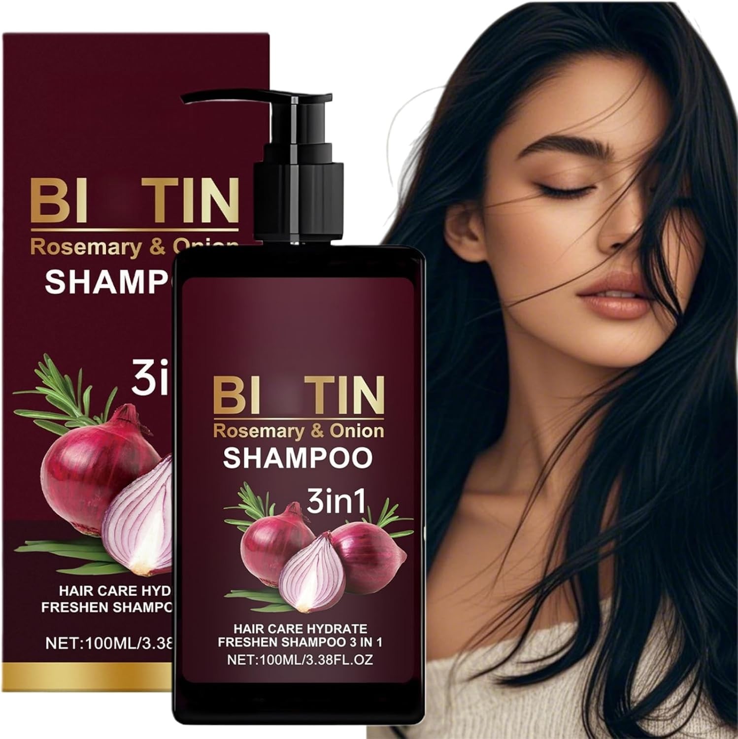 100ML Onion&Rosemary Biotin Shampoo,Moisturizes Scalp Strong Hair Roots,Biotin