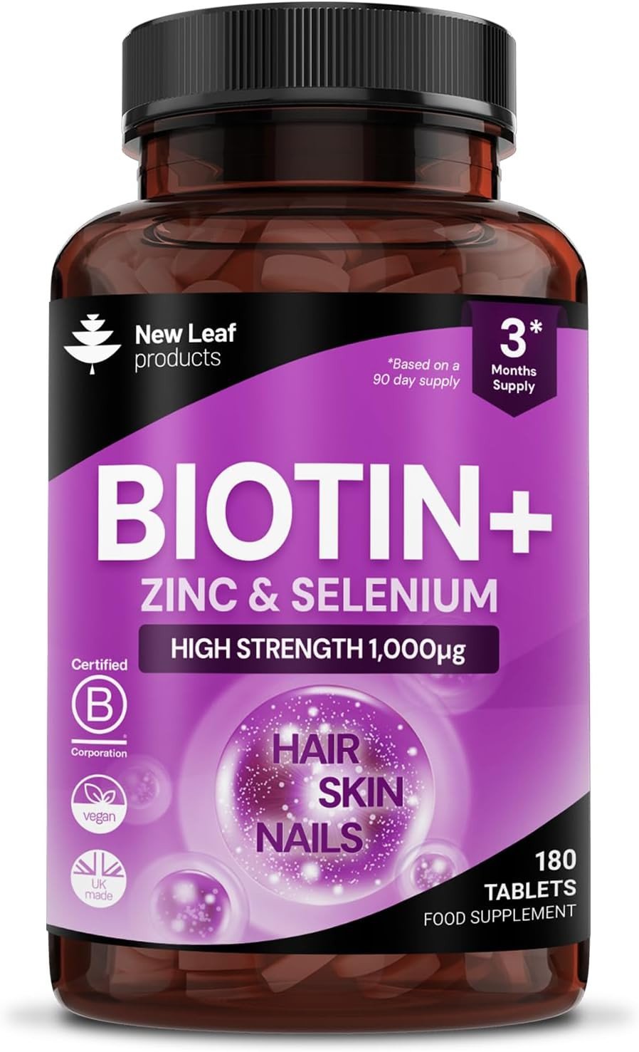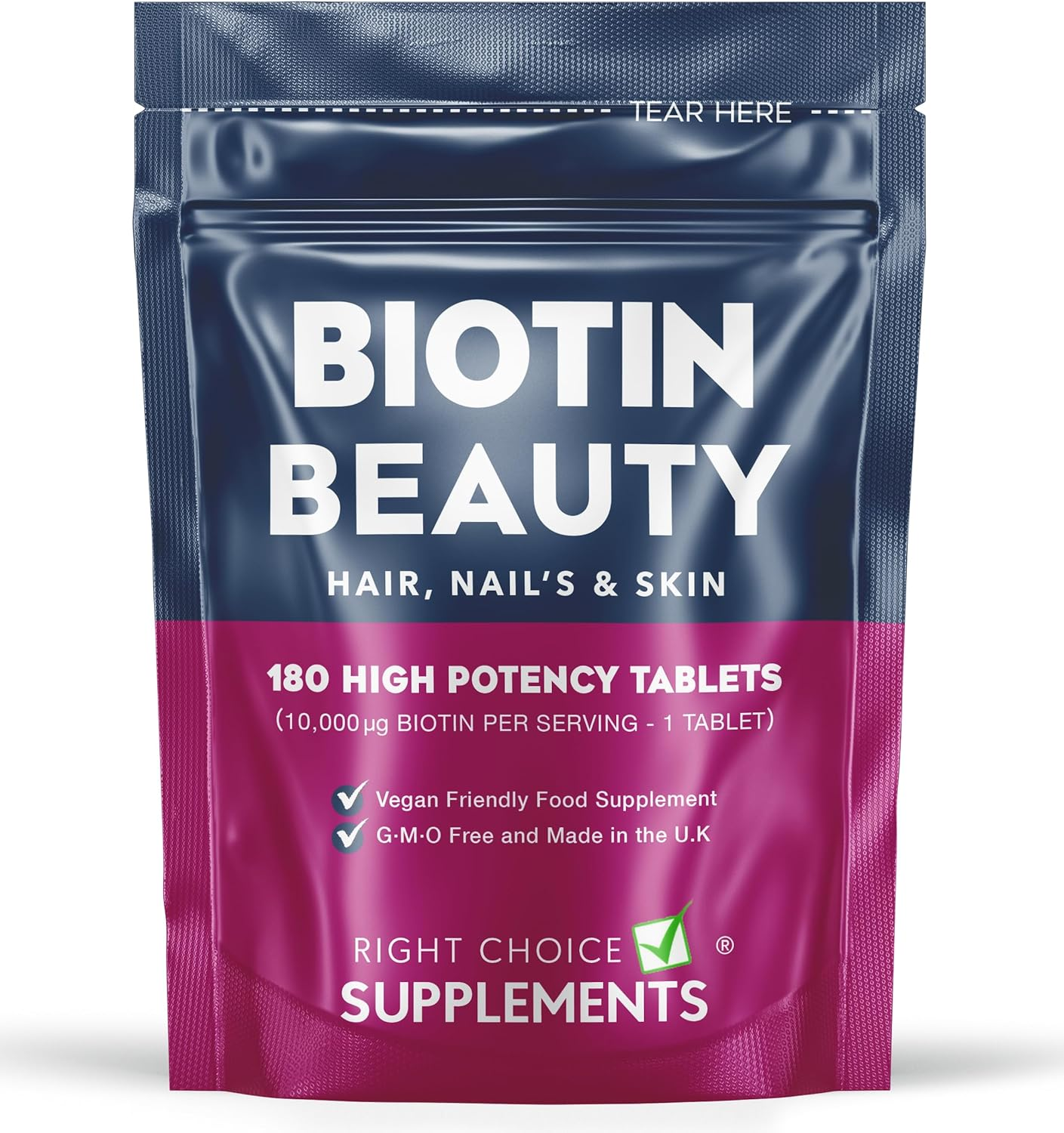 Biotin 180 Tablets 10000mcg Supplement for Hair Growth, Skin, Nails & Immunity