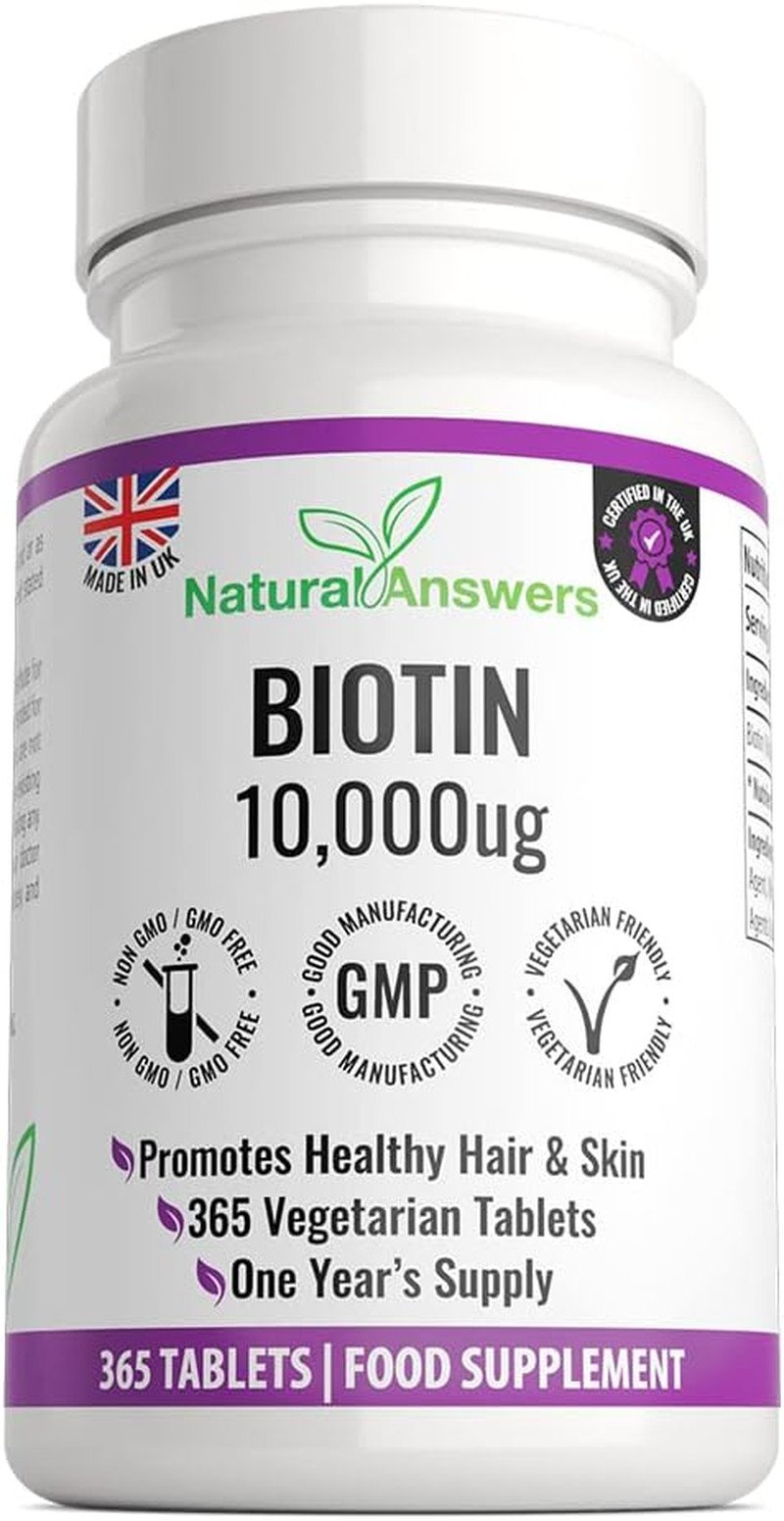 Biotin Tablets 10,000mcg | Healthy Hair, Skin & Nail Growth, 365 Tablets ONE YR