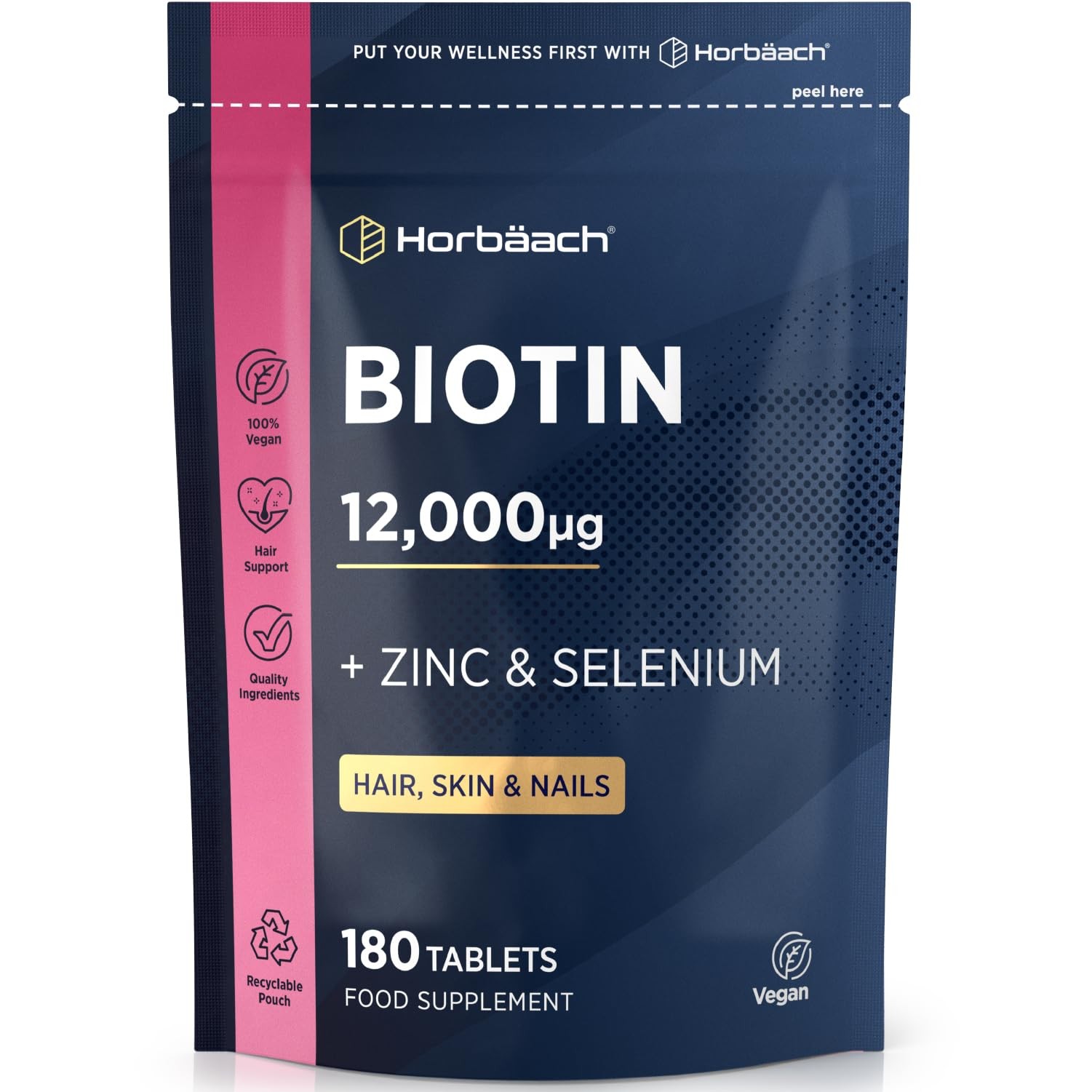 Biotin Hair Growth Vitamins 12000mcg 180 D-Biotin Tablets Enriched with Zinc ...