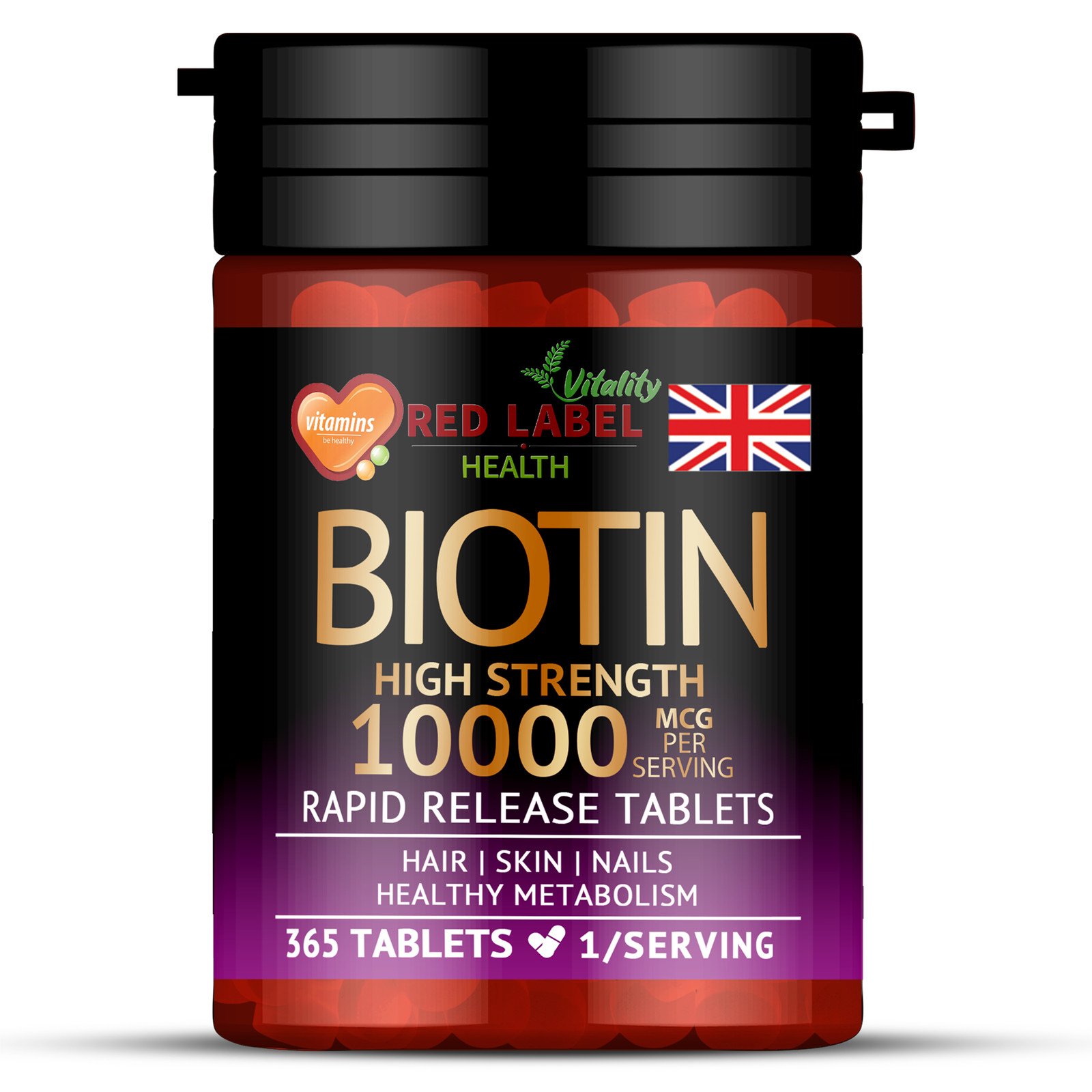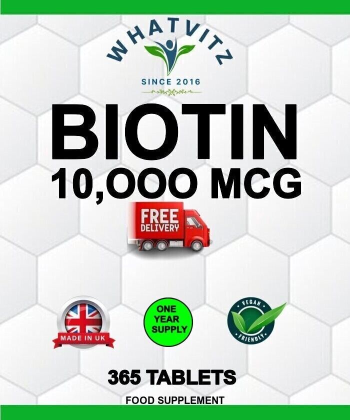 BIOTIN 10,000mcg - 365 TABLETS. MAX STRENGTH. HEALTHY HAIR, SKIN & NAIL GROWTH