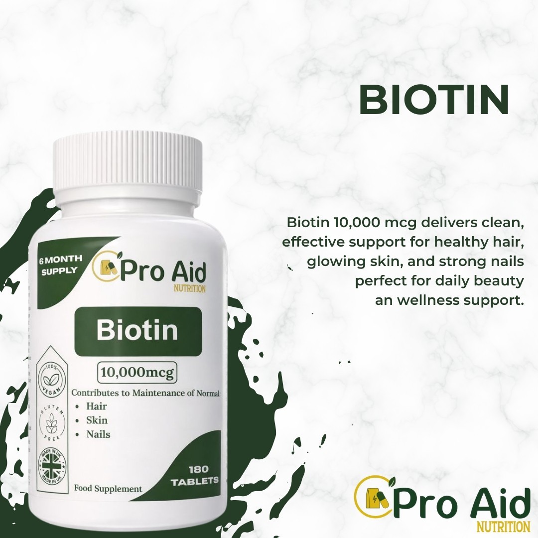 BIOTIN Hair & Nail Tablets Supplement 10,000mcg 180 Pack MADE IN UK by PROAID
