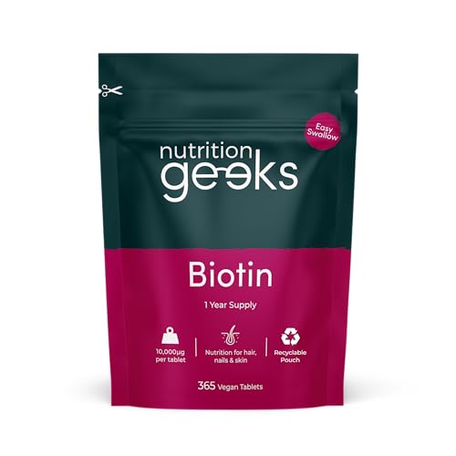 Biotin Hair Growth Supplement - 1 Year Supply High Strength Biotin 10,000mcg Per Tablet, Hair Skin and Nails Vitamins for Women & Men, 365 Vegan Biotin Tablets - Easy to Swallow UK Made Hair Vitamins
