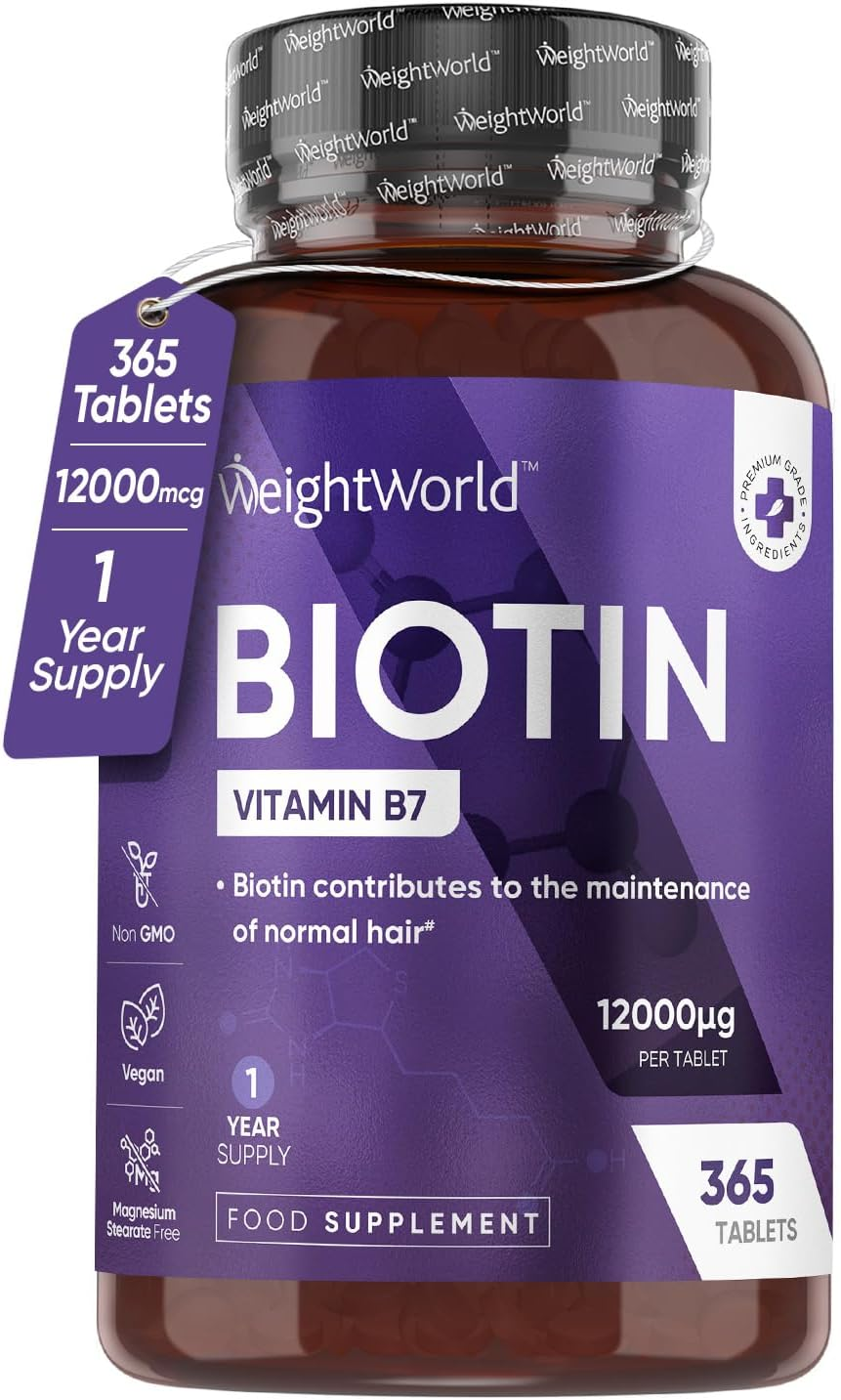 WeigthtWorld Biotin Tablets - 12000mcg - Hair vitamins - Metabolism support