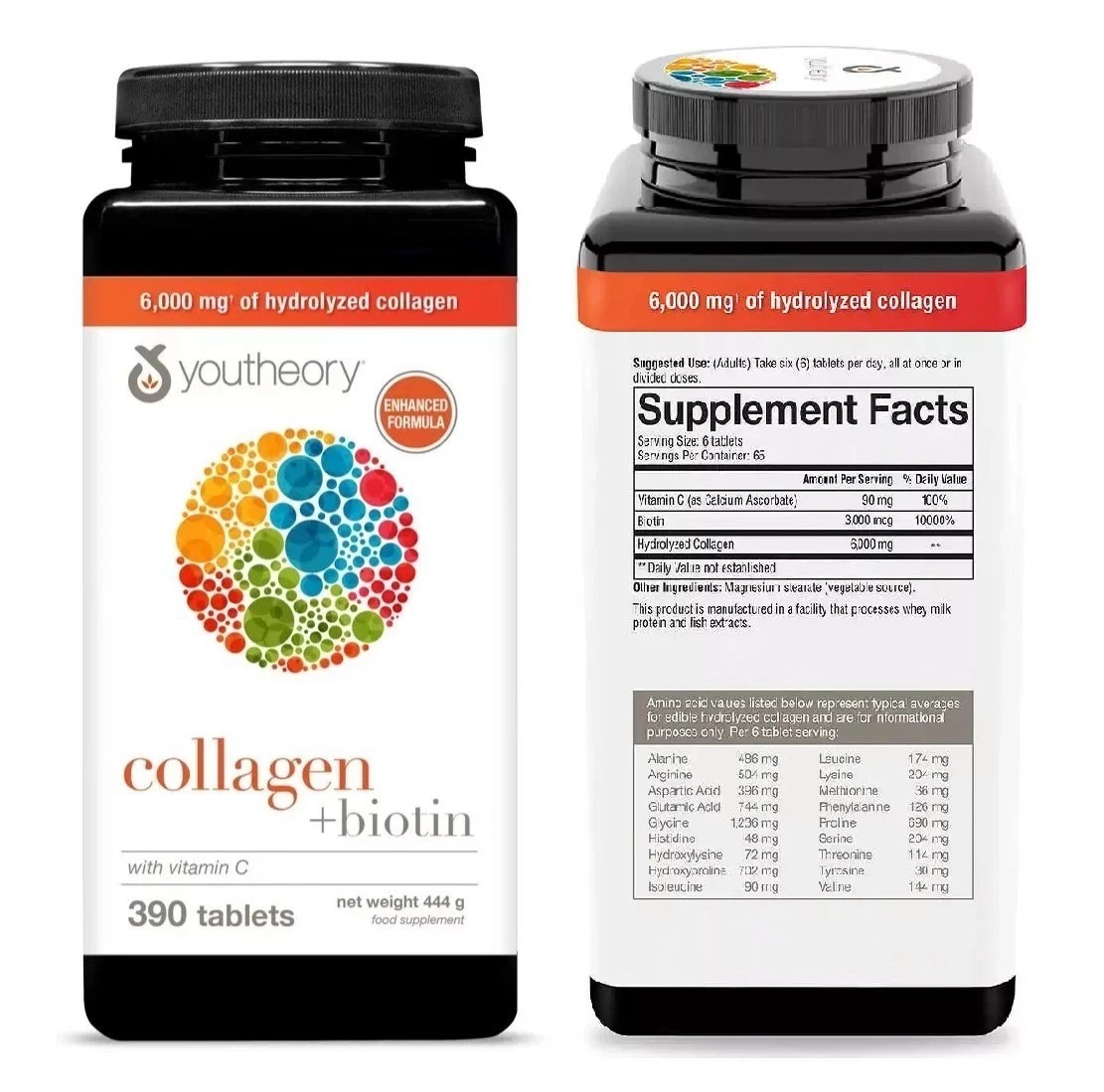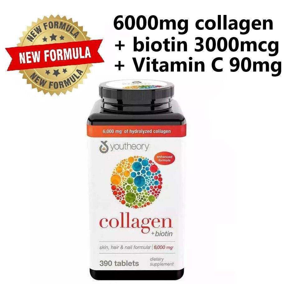 Youtheory Collagen and Biotin 390 Tablets 6000mg with Vitamin C Hair Skin Nails