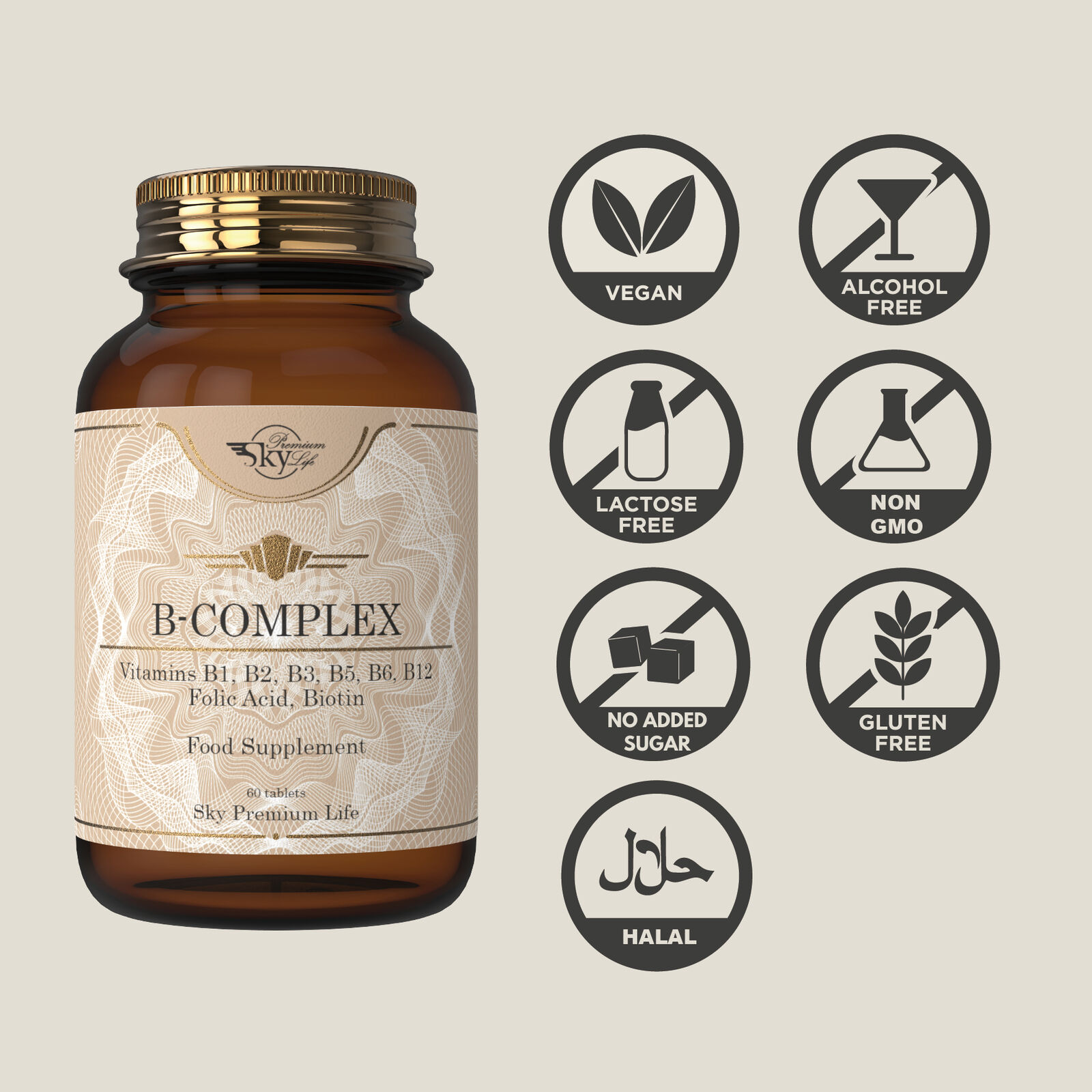 Sky Premium Life B-Complex Folic Acid Biotin 60 Vegan Tablets