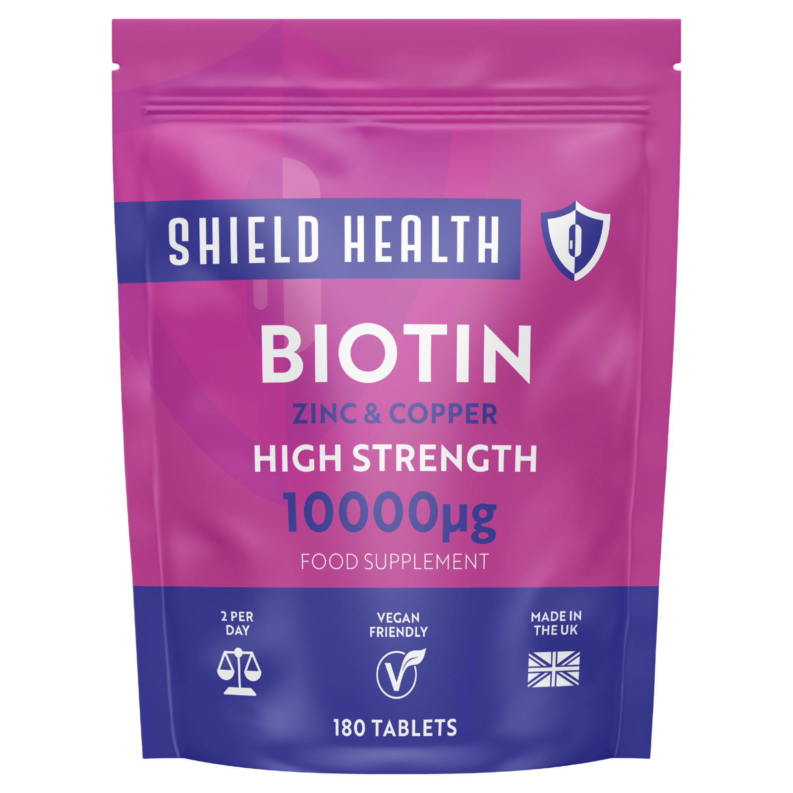 Biotin Hair Growth Tablets 10000mcg Enriched with Zinc & Copper Qty 180 UK Made