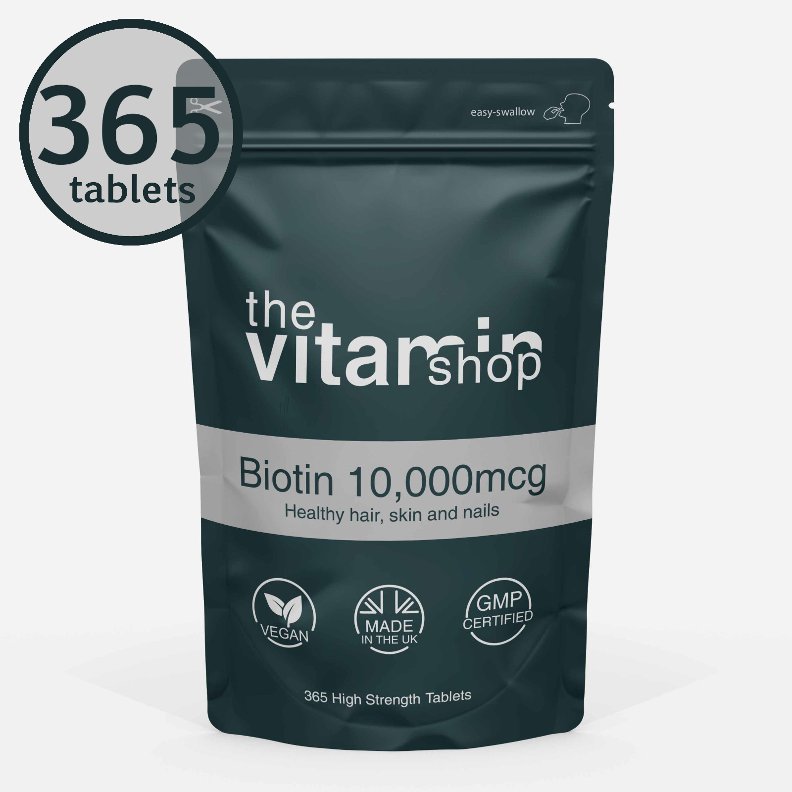 365 x Biotin 10000mcg Tablets Max Strength Healthy Hair Growth, Skin & Nails B7