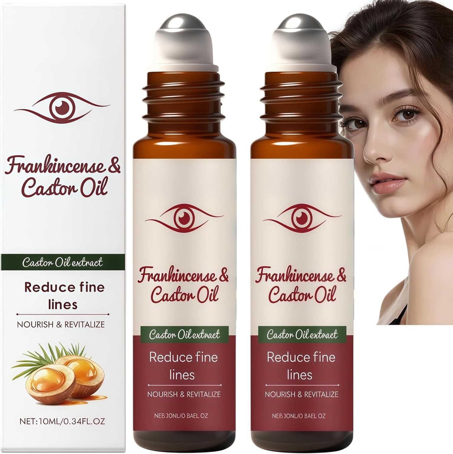 2PCS Castor Oil Eye Roller,Anti-Aging Eye Roller,Castor Oil Roll On for Face,An