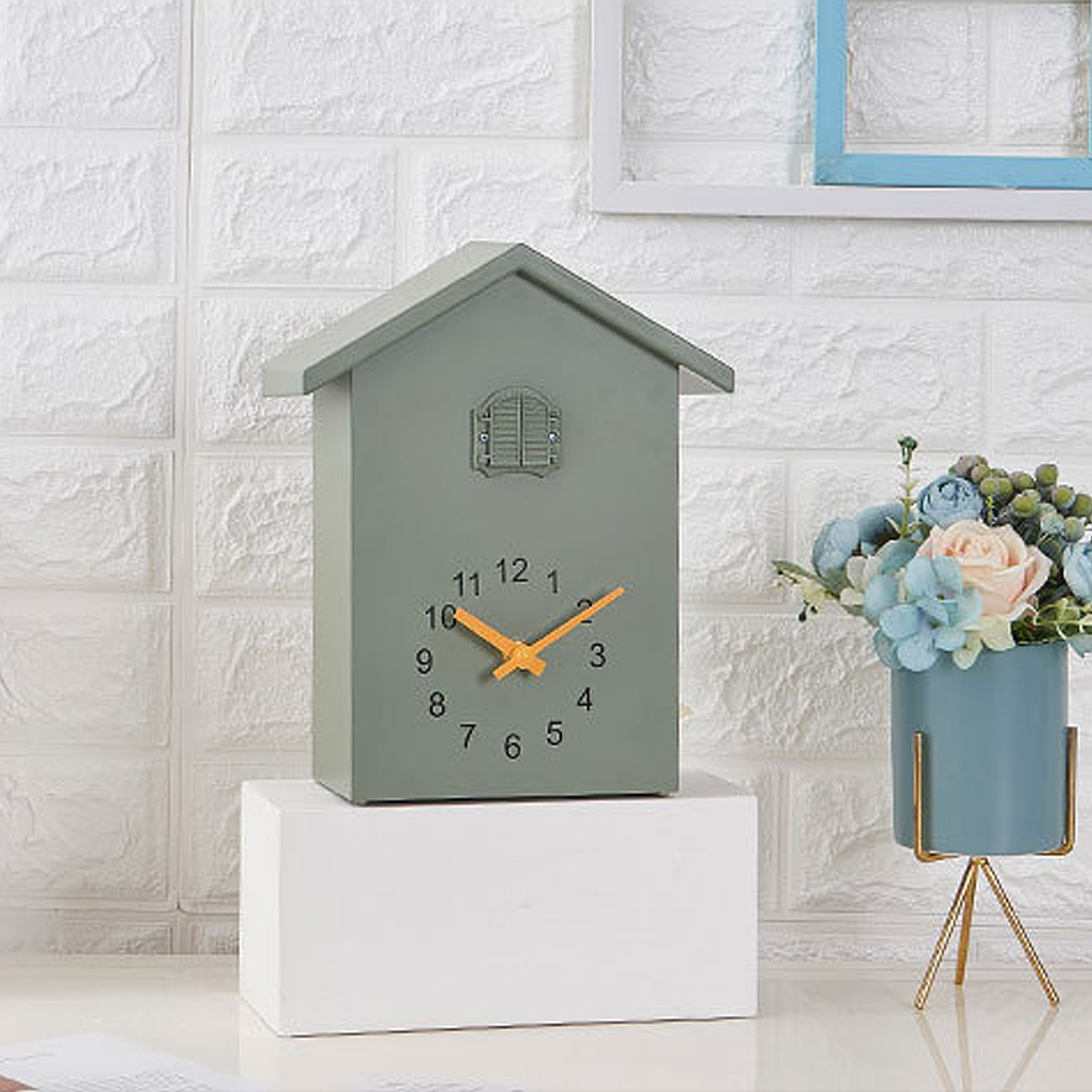 Blue Gray Roof Bird House Wall Clock Bird Voice Call Stylish Decorative