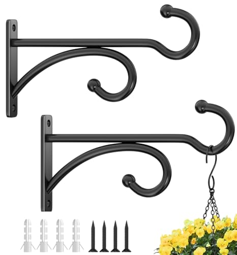 2 Pcs 15cm (6 Inches) Planter Hooks for Hanging Plants - Plant Hanger Hook Indoor Outdoor, Plant Wall Hooks, Brackets for Hanging Plants, Baskets, Wind Chime, Bird Feeder, Bird House (Black, Metal)