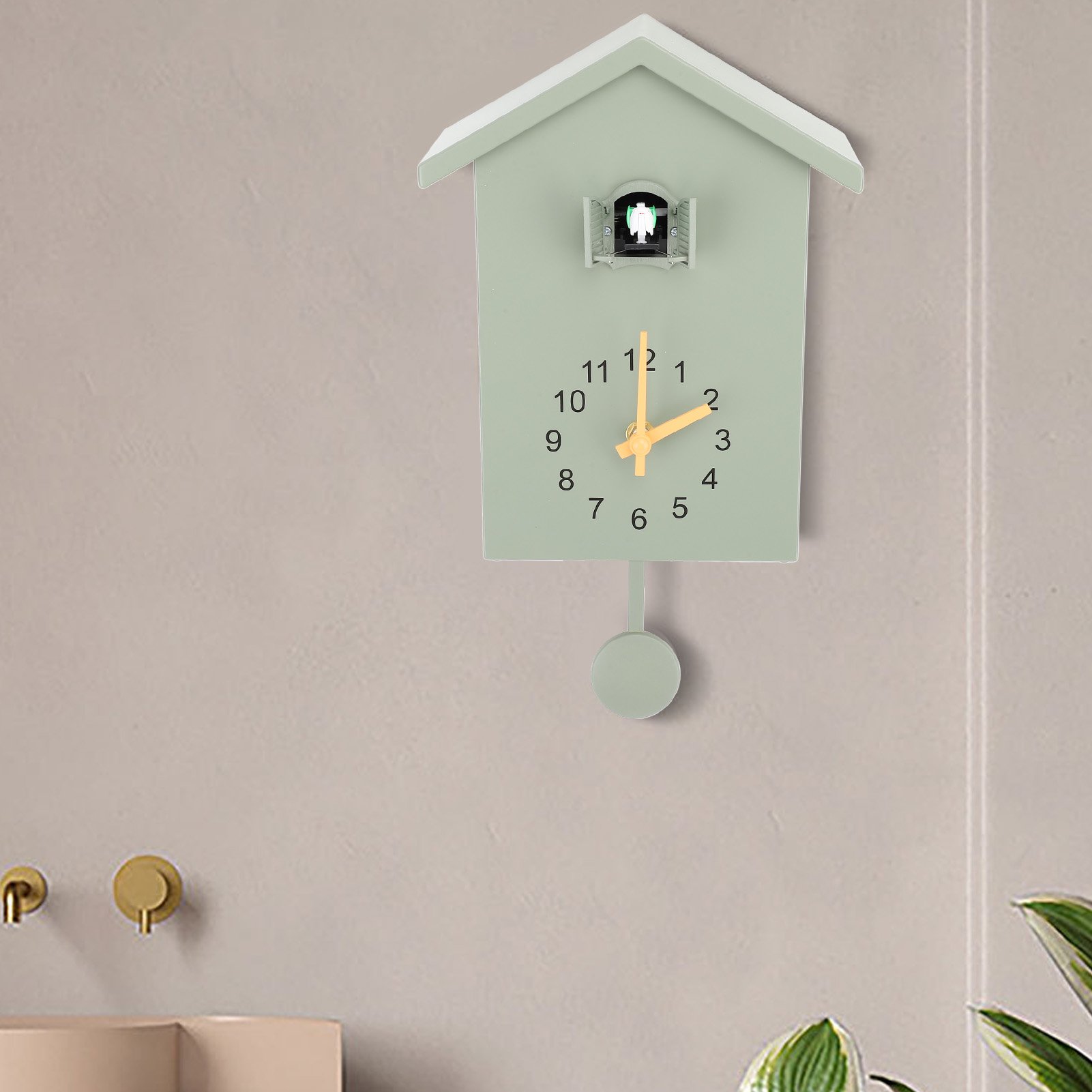 Green Bird House Wall Clock Bird Voice Call Nordic Style Bird House Pendulum LW