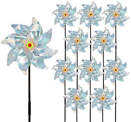 Wleozys 10Pcs Reflective Bird Repellent Windmill, multicolor Reflective Birds Deterrent, Repellent Windmills Scare Birds to Keep Birds Away From Your House,Window,Garden,Farm (10)
