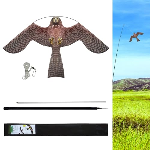 eyijklzo Bird Scarers Kite for Gardens Hawk Kite with 6m Telescopic Pole Pigeon Seagull Deterrent Bird Repellent Devices for Roof Farm Yard Boat (Gray)