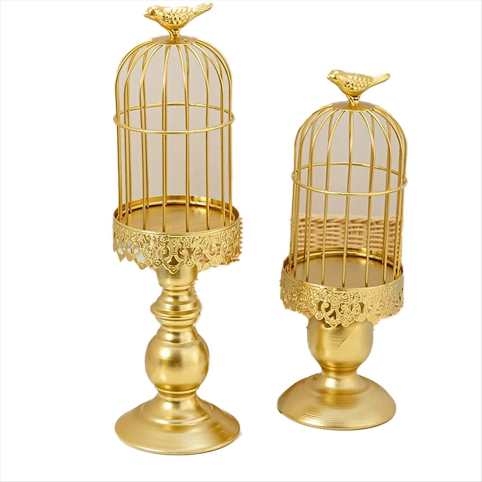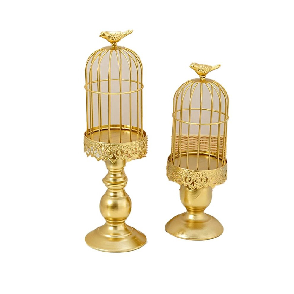 Buhdjfnke 2PCS Retro Bird Cage Candle Holder Metal Iron Art Candlestick Wedding Party Home Tables Centerpieces Decoration Gold