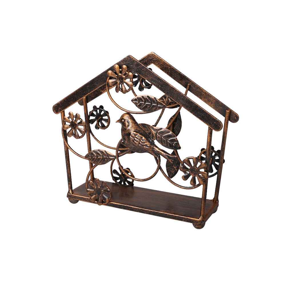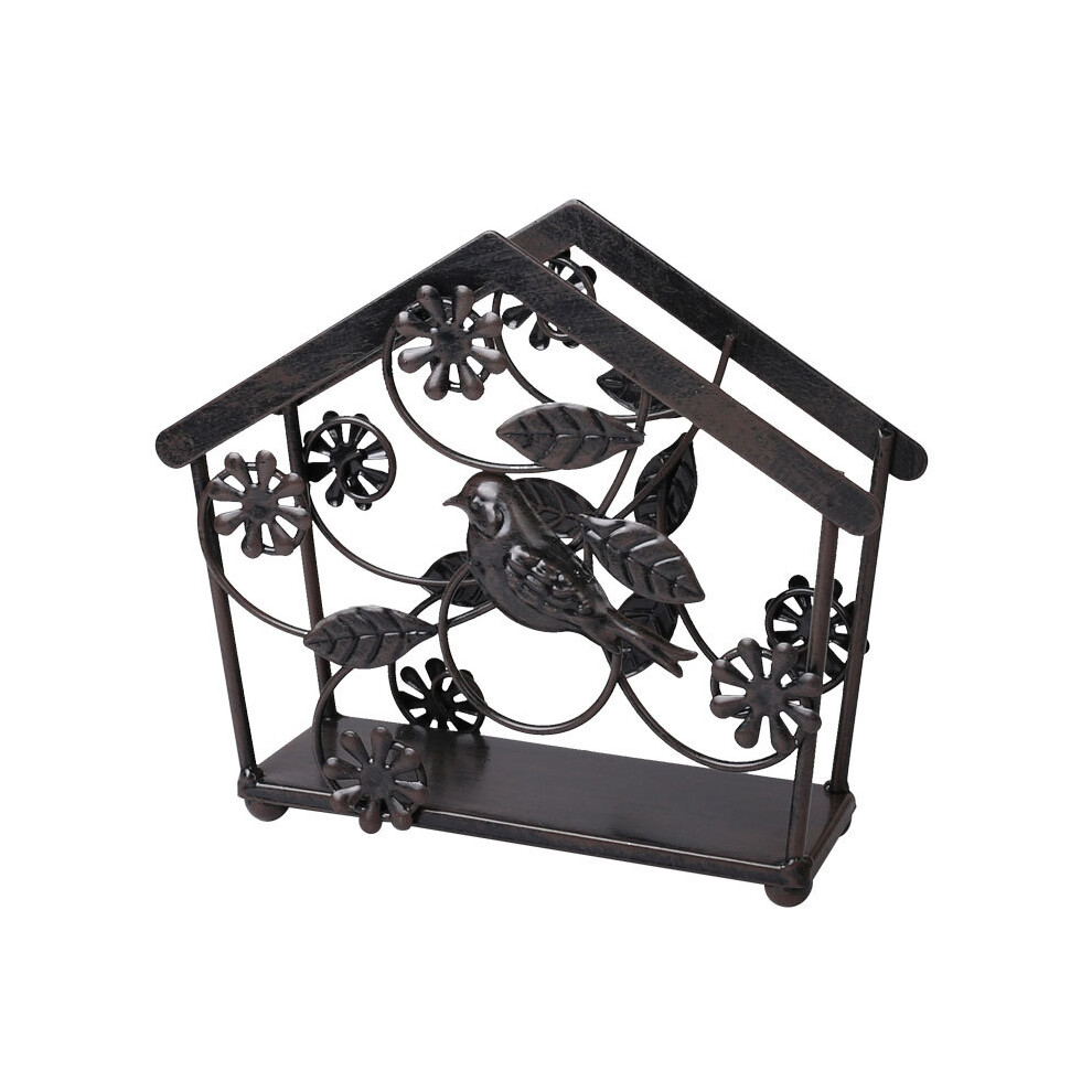 Farmhouse Elegance Napkin Holder, Cast Iron Bird & Tree Design, Vintage Bronze Painting Heavy Duty Metal Napkin Stand for Home Kitchen Tables Indoor O