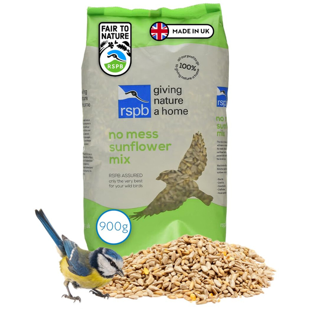 RSPB 900 gram No Mess Sunflower Mix for Wild, Husk Free, for use, Bird Tables & Ground feeders, 900g