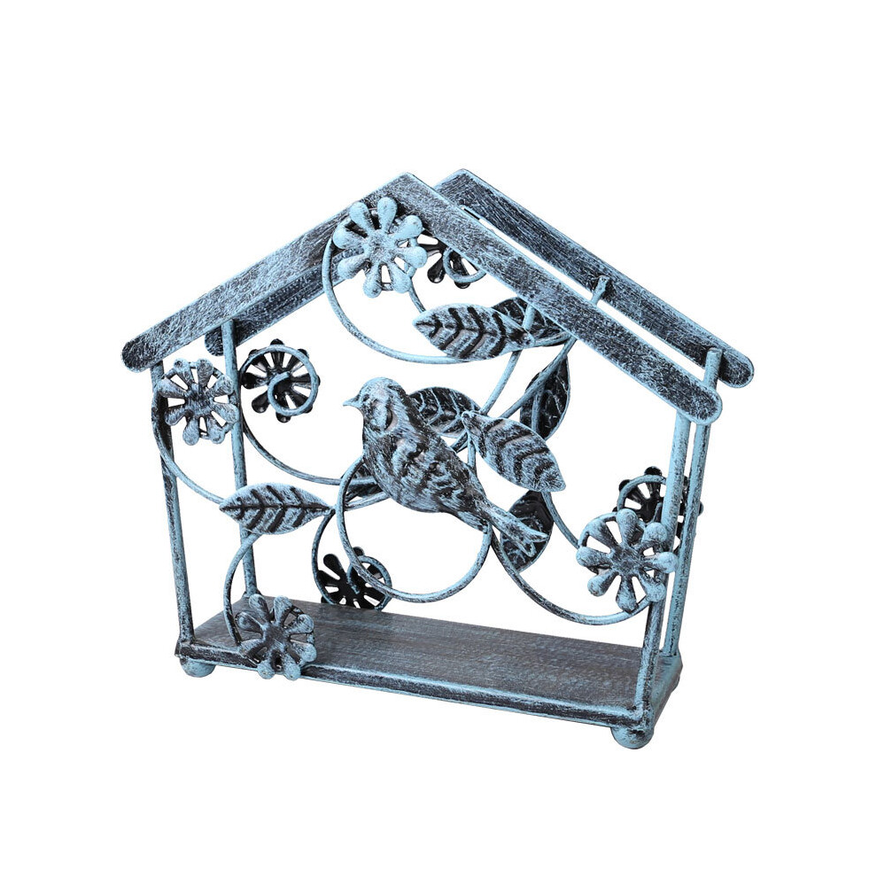 Vintage Napkin Stand, Classic Metal Bird And Flower Design, Elegant Iron Napkin Dispenser For Kitchen Tables, Heavy Duty Metal Turquoise Powder Coatin