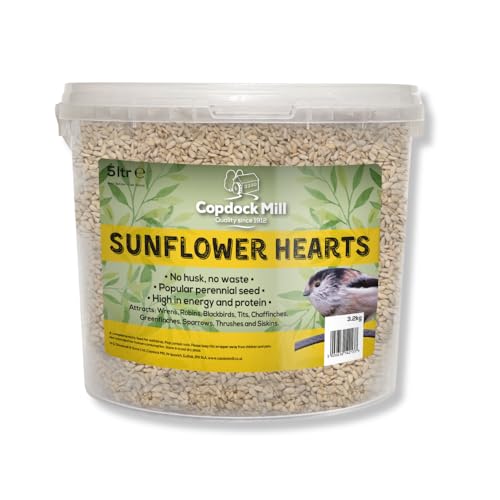 Copdock Mill Sunflower Hearts Bird Food 3.2kg / 5L Tub – No Mess Sunflower Hearts for Wild Birds – Bird Seed Suitable for Sunflower Seeds Feeders & Bird Tables