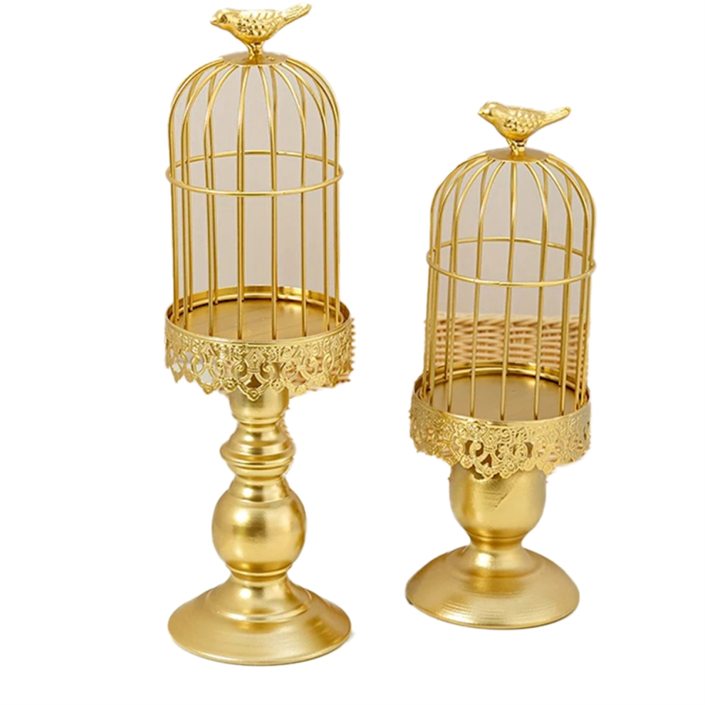 2PCS Retro Bird Cage Candle Holder Metal Iron Art Wedding Party Home Tables Centerpieces Decoration Gold