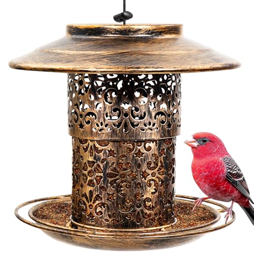 Metal Bird Feeder for Outdoors Hanging - Premium Grade Metal Bird Feeder for small birds, Chew-Proof, Weather and Water Resistant Wild Bird feeders, Outside and Garden Decoration