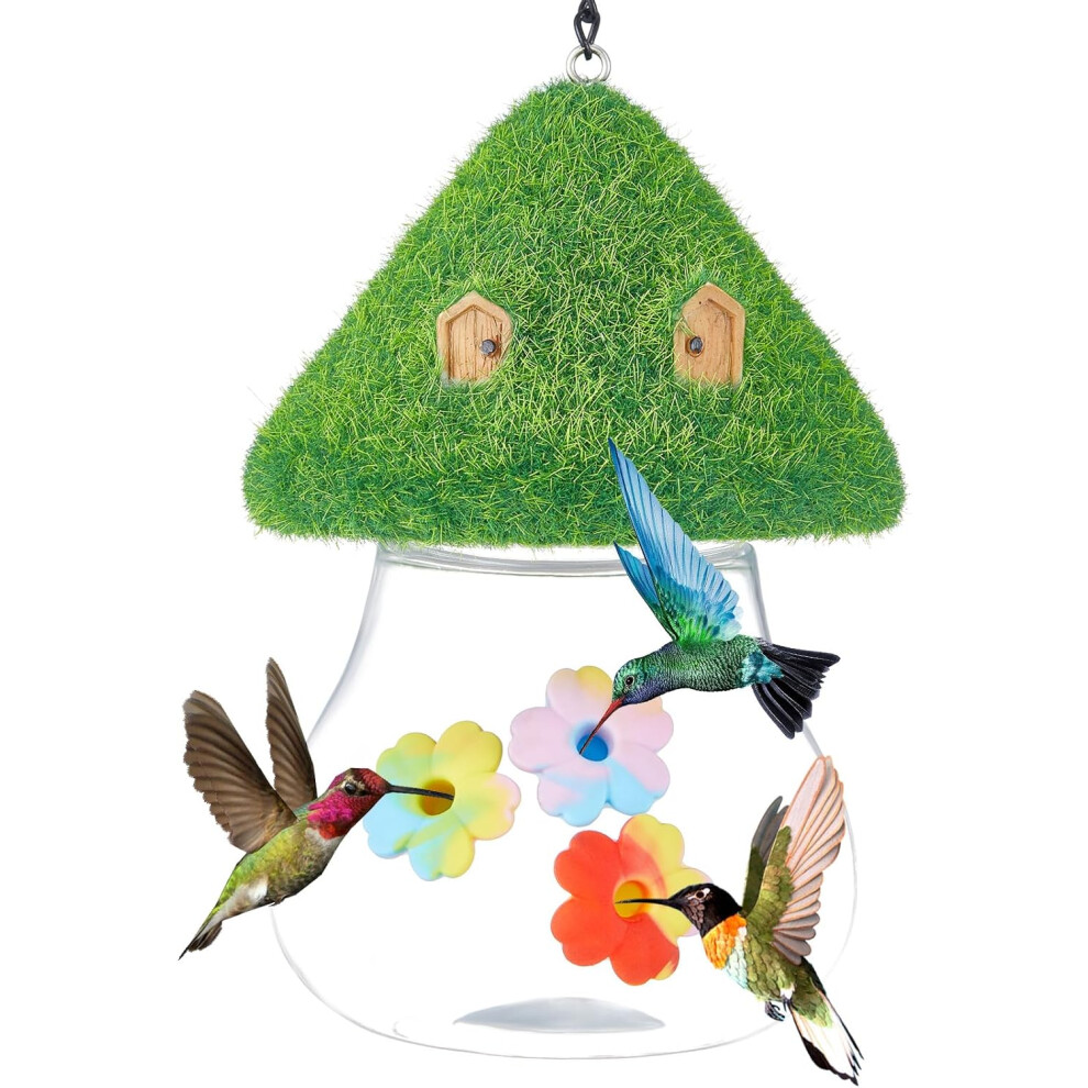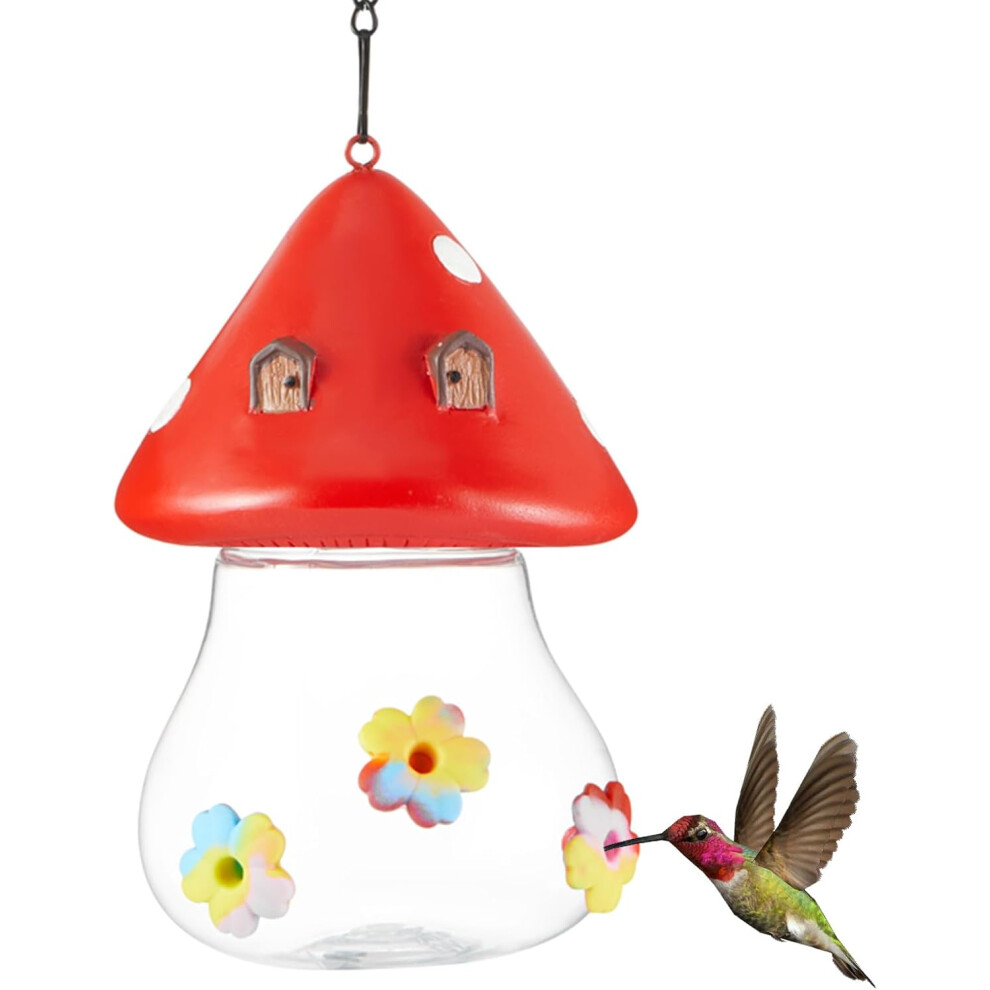 Hummingbird Feeder,Cute Mushroom Hummingbird Feeders for Outdoors Hanging,3 Petals Decorated with Water Spout Bird Water Feeder,Hummingbird Heeders fo