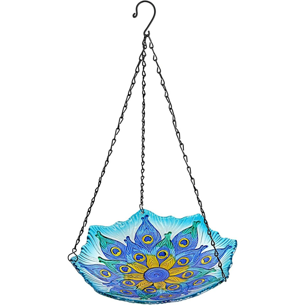 Hanging Bird Bath Outdoor Glass Bird Water Feeder with Metal Chain