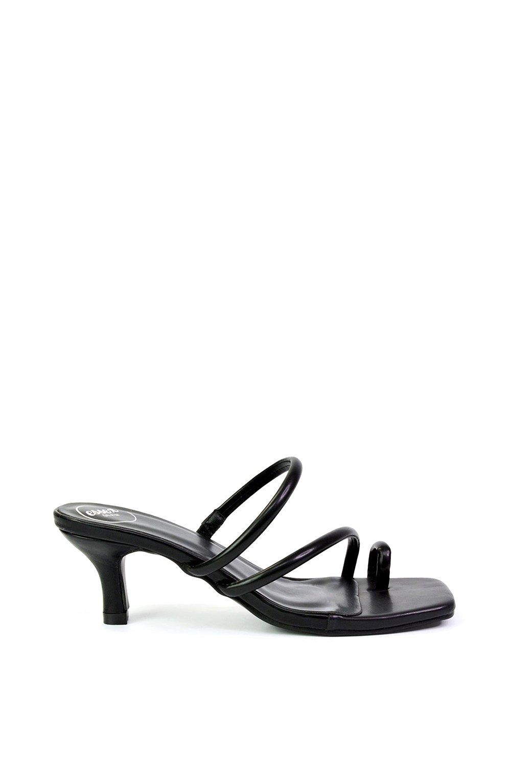 'Prancy' Toe Post Ring Strappy Square Toe Slip on Kitten Heel Mule Sandals