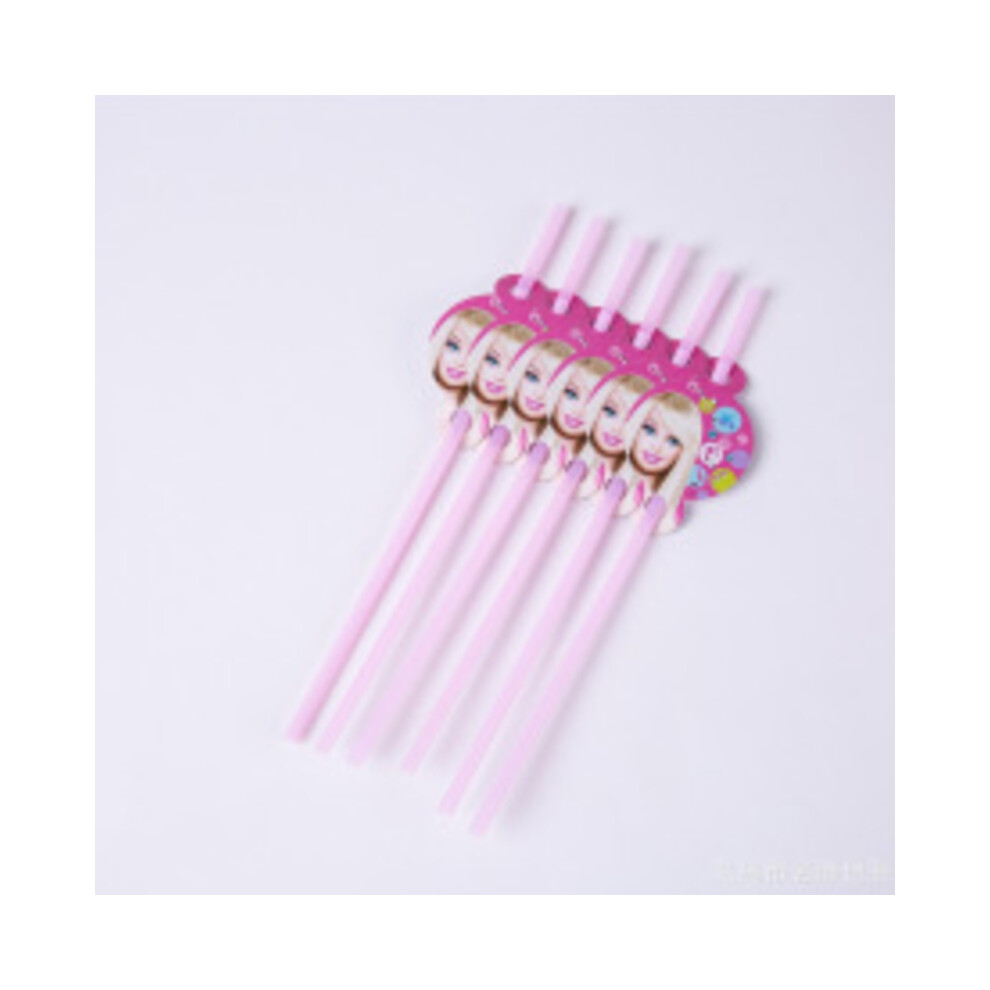 (Straw) Doll Barbie Girl Pink Birthday Party Supplies Tableware Cups Decorations Plates