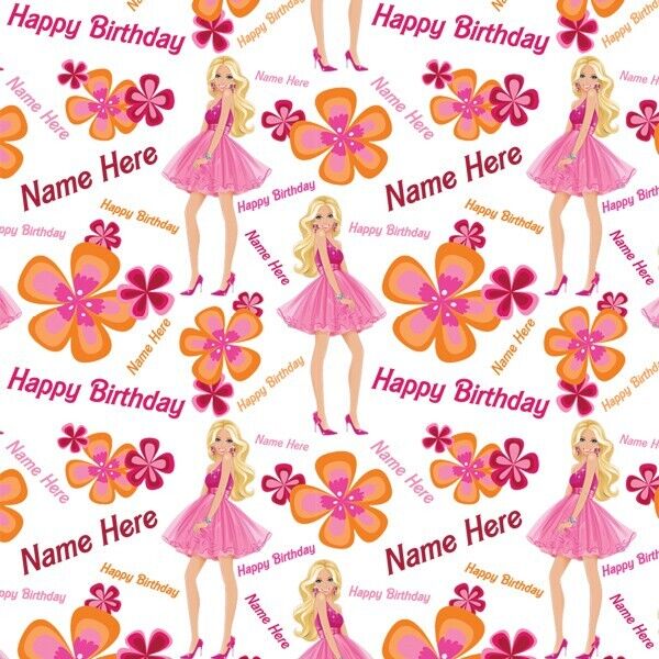 Barbie Doll Themed Personalised Birthday Wrapping Paper - ADD A NAME!