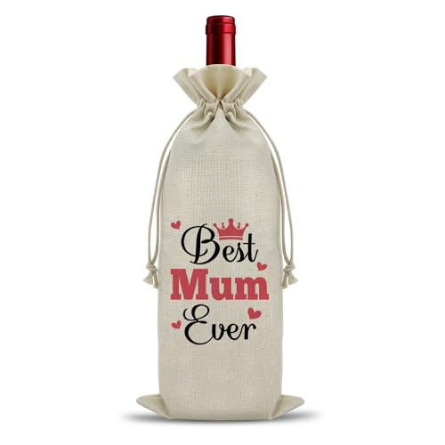 Best Mum Ever Gifts Wine Bag for Stepmother Bonus Mom Mummy Birthday Gift Mothers Day Gifts for Mother from Daughter Best Mum Wine Bottle Gift Bag Christmas Thanksgiving Present for Mother Step Mums