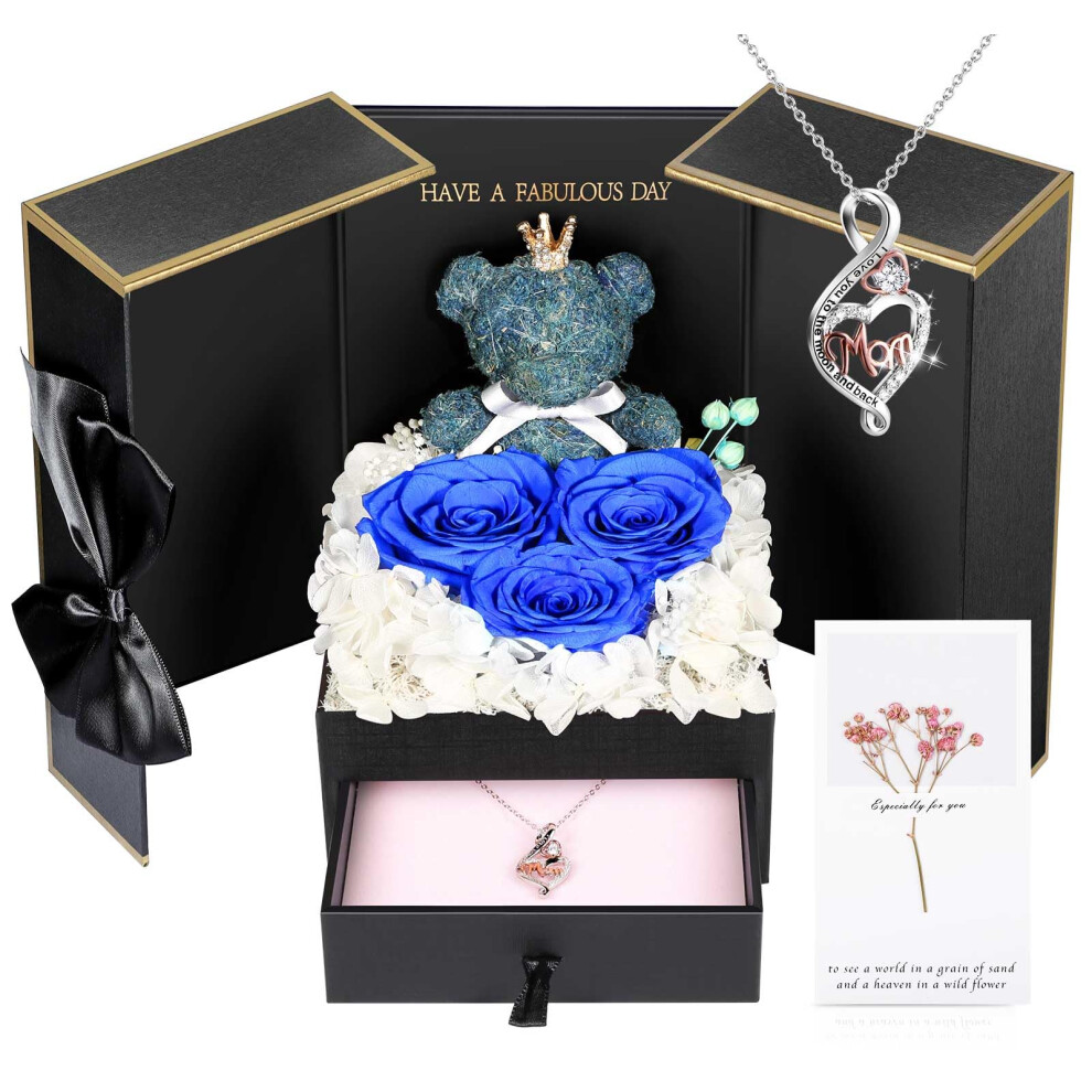 ADDWel Gifts for Mom from Daughter and Son Unique Mom Birthday Gift Idea Preserved Real Roses with Sterling Silver Mom Necklace Cool Present to Mo