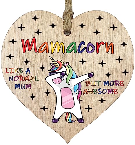 Stuff4 Mum Birthday Gift for Her - Mamacorn - Wooden Heart Plaques, Light Wood Sign Keepsake, Funny Mom Happy Birthday Plaque Mum Gifts Unicorn Awesome Mum Present from Son or Daughter