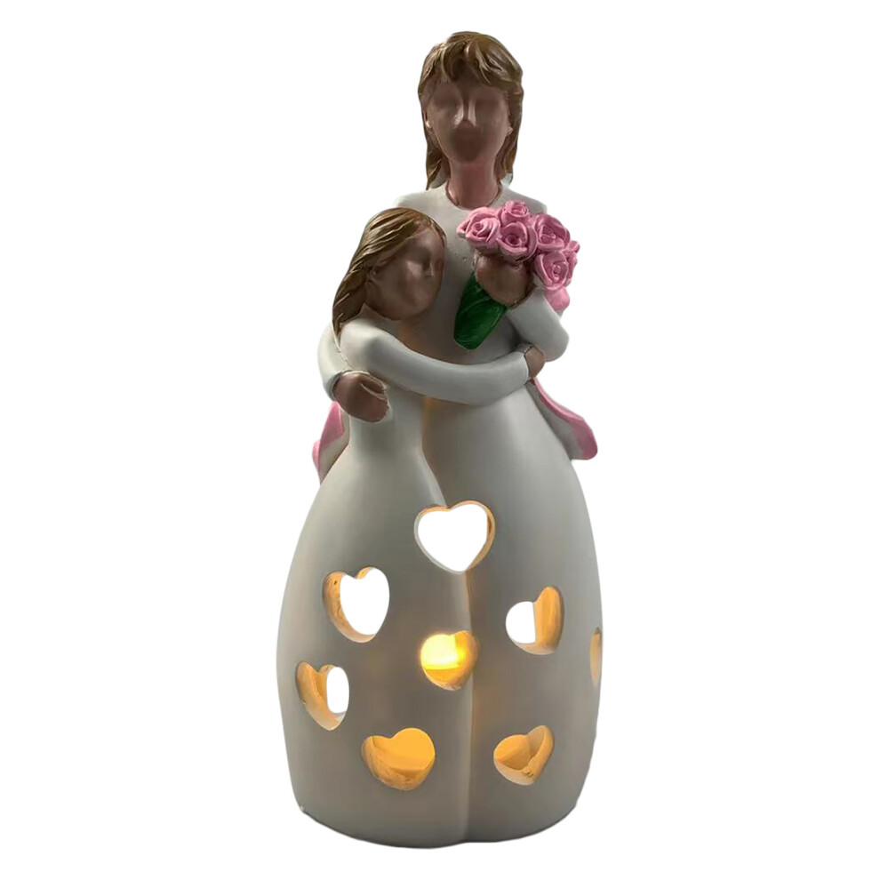 Gift Statues With LED Candles Emotional Connection Gifts For Mom From Daughter Birthday Christmas Present, Hand Painted Ceramic Figurine Includes
