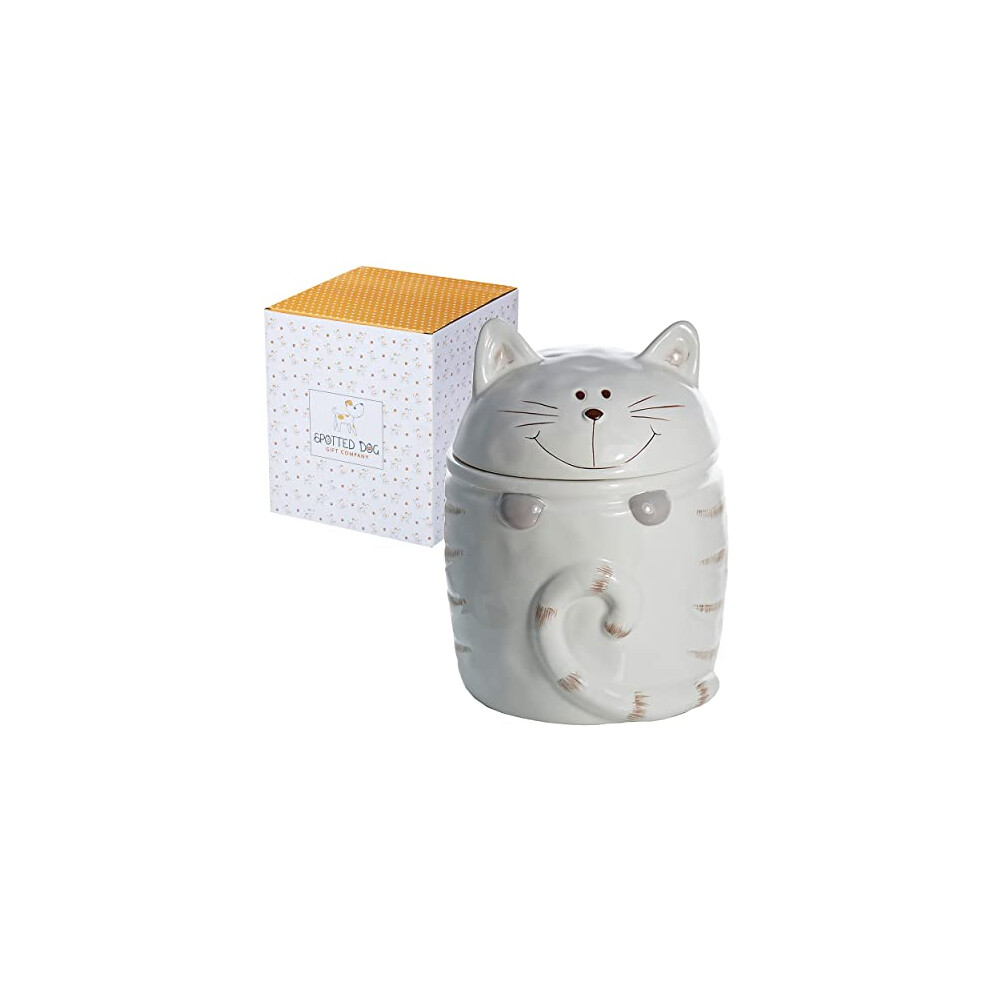 SPOTTED DOG GIFT COMPANY Cat Cookie Jar with Lid, Ceramic Biscuit Barrel, Large Treat Food Storage Container Canister, Cute Novelty Cat Kitchen