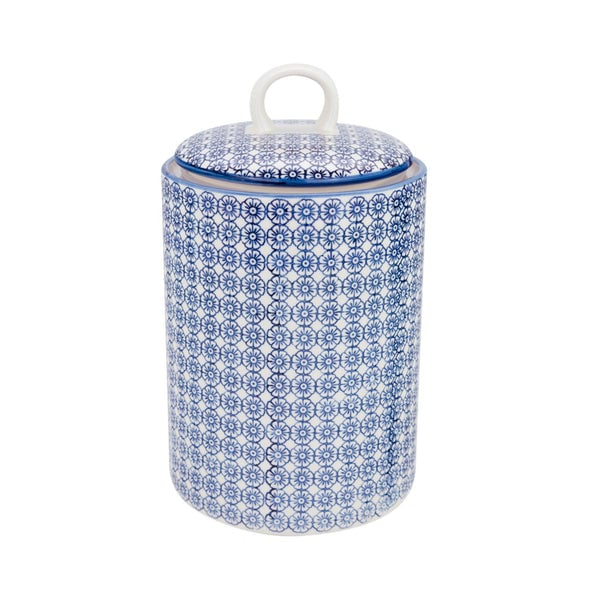 Hand Printed Stoneware Biscuit Barrel - Navy