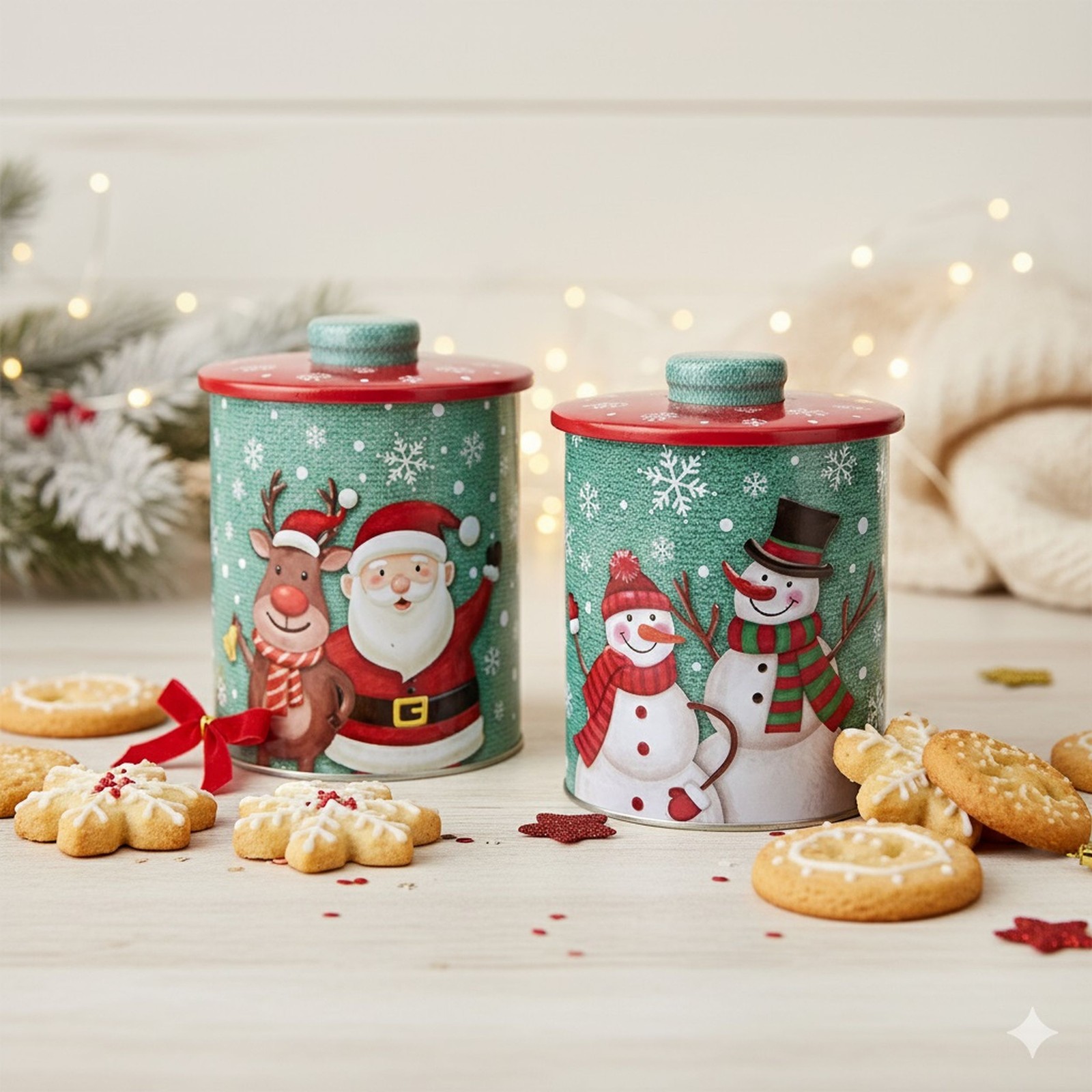 1 Christmas Biscuit Tin Barrel Cute Christmas Character Round Sweet Tin 15x13cm